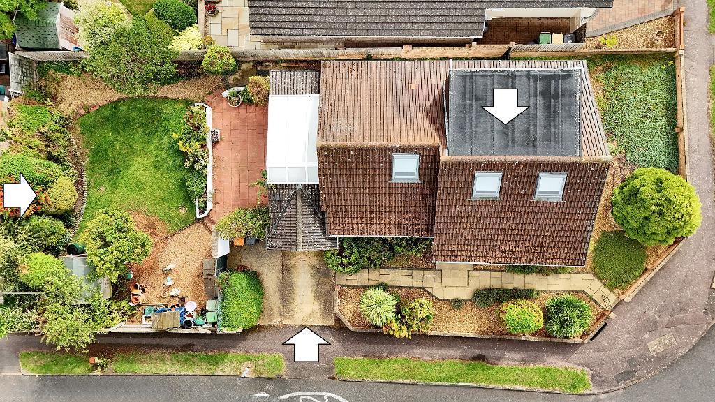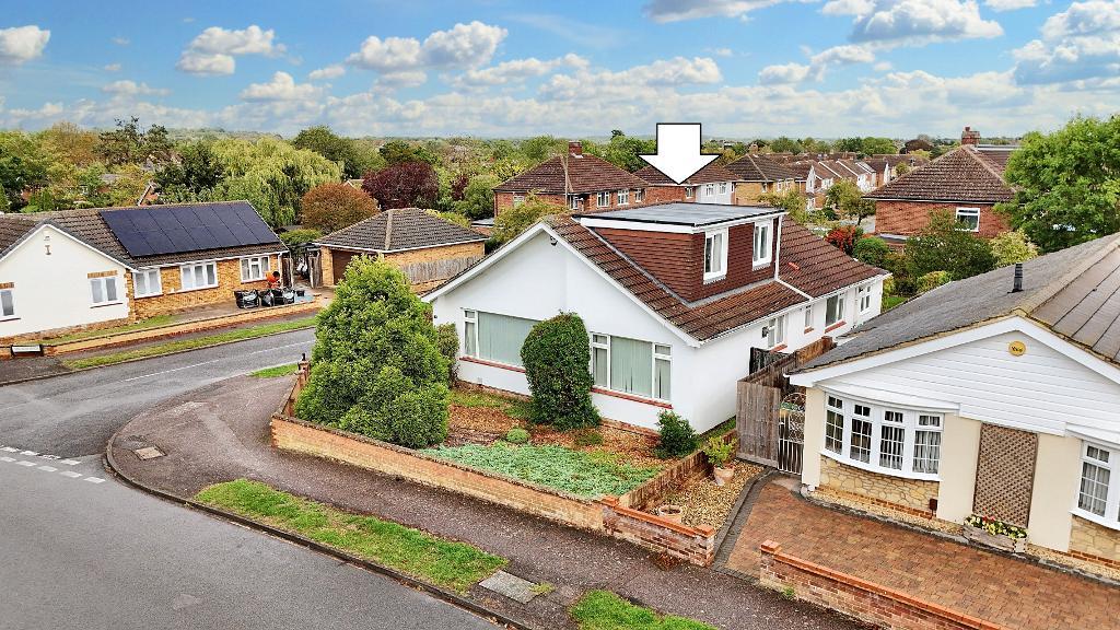 This versatile corner-plot chalet bungalow offers flexible living across two well-planned floors. GROUND FLOOR: Entrance porch, a lounge, a dining room, a fitted kitchen, two bedrooms, a dressing area, a small conservatory, a wet room and an additional cloakroom. UPSTAIRS: Main bedroom and an en-suite with a large additional storage room. The enclosed garden provides a private outdoor retreat. A driveway adds convenience for parking. No upward chain means a smoother move, and the property sits in a great school catchment area, ideal for families seeking stability and opportunity.